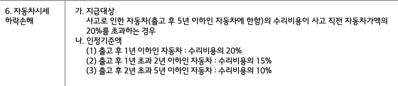 2. 골격 손상 또는 주요 외판 부품 교환 시 보상 가능, 수리비의 15~20% 수준